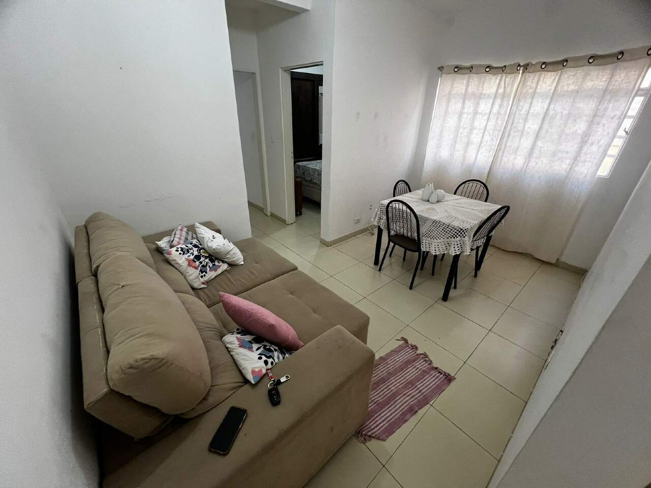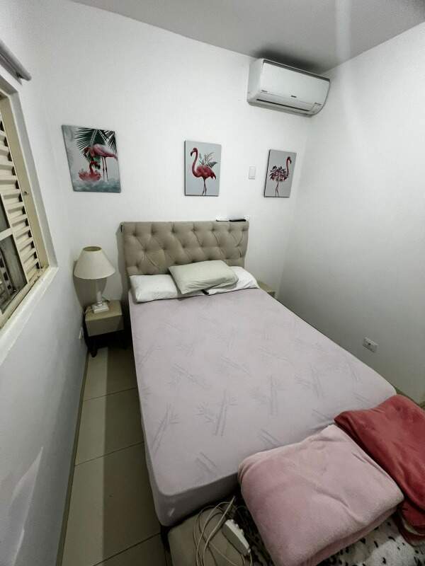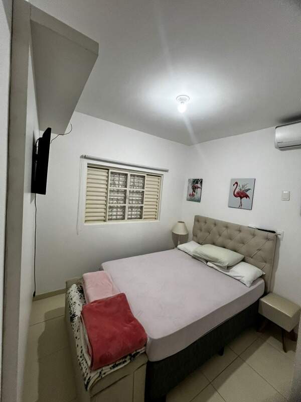 Apartamento todo equipado e pronto para morar. Contém cortinas e persianas nos ambientes, piso em porcelanato, cozinha, área de serviço e banheiro com paredes revestidas, 01 quarto com ar condicionado, TV e cama de casal, um quarto com cama de solteiro e 02 armários, sala com mesa de jantar e sofá reclinável, banheiro com box em Blindex, espelho e móvel. Cozinha com planejados, fogão, torradeira, sanduicheira e liquidificador. Área de serviço com máquina de lavar roupas.