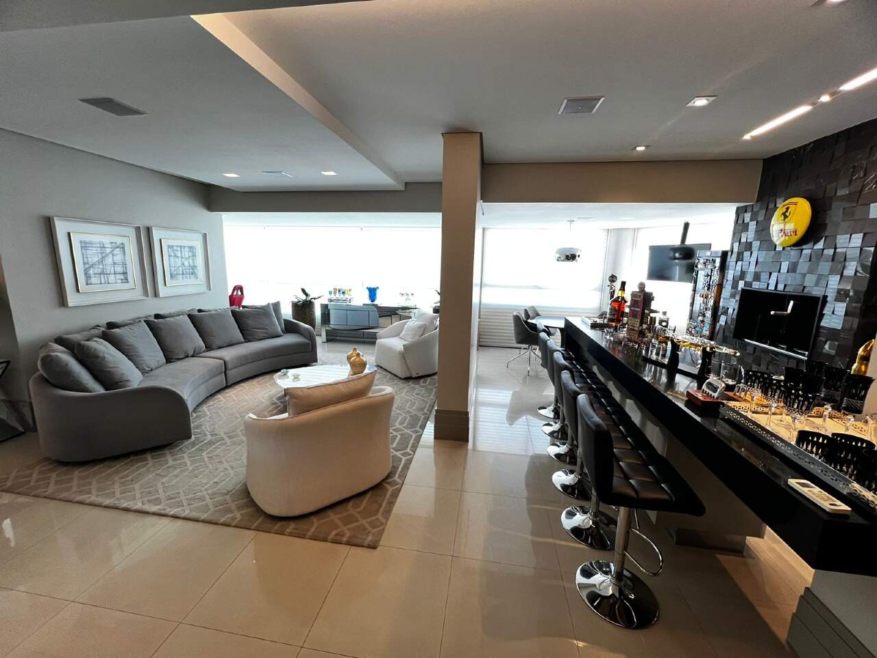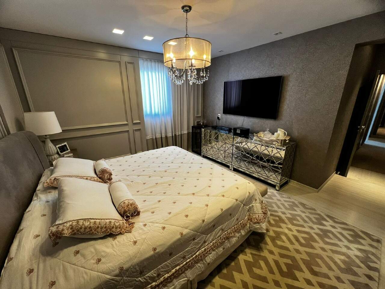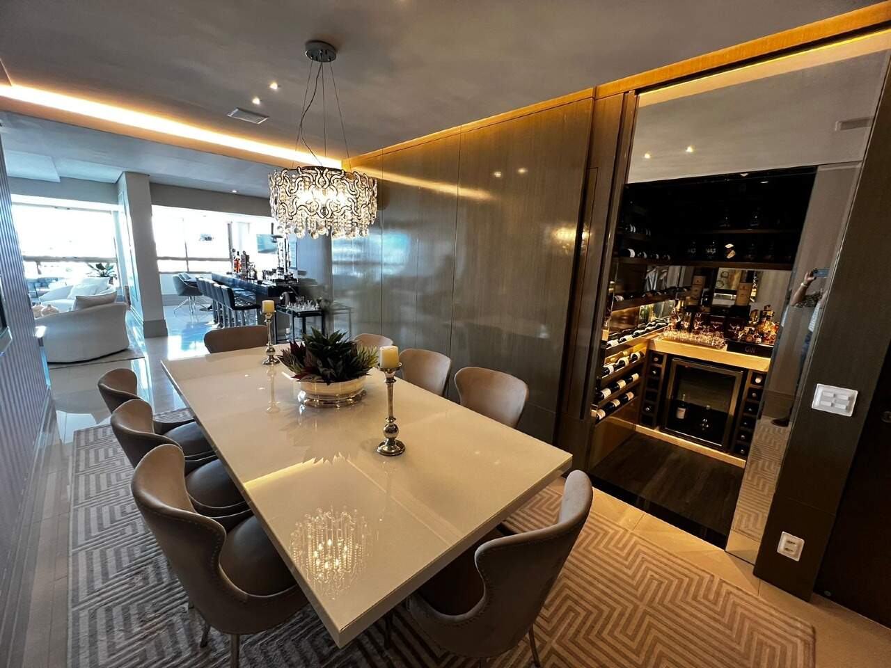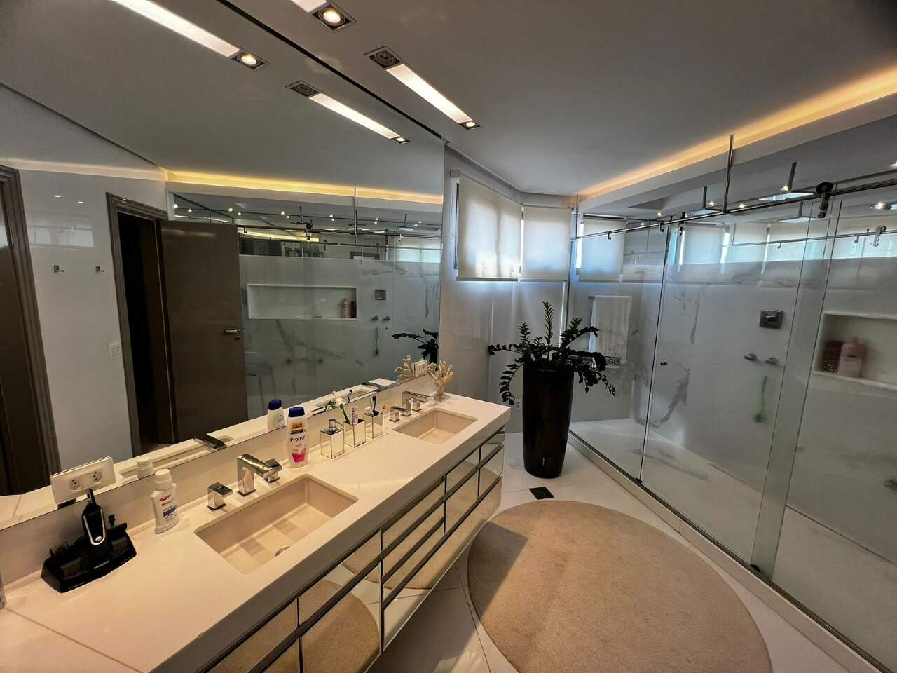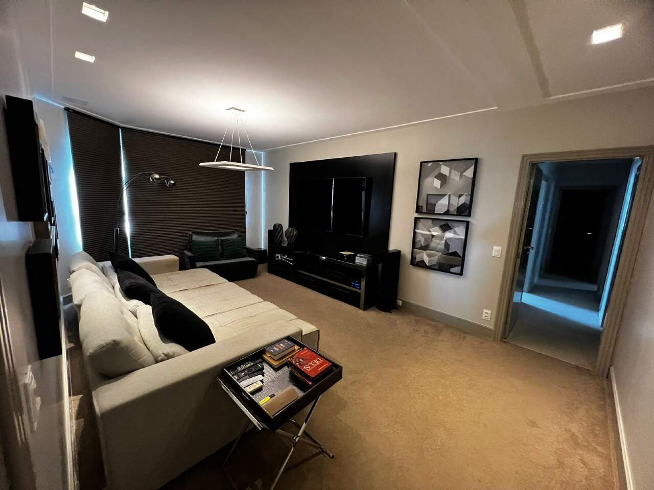 Apartamento com 1 sala de estar, 2 salas de TV, 1 sala de jantar, Home theater, 4 suíte com closet, cozinha planejada, adega climatizada, 1 wc social, área de serviço, interfone, lavabo, 4 vagas de garagem. Condomínio com academia, área de lazer, churrasqueira, hall de entrada, piscina, porteiro eletrônico, salão de festas, sauna. Apartamento incrível, com acabamento de ótima qualidade e muito bom gosto. O edifício dispõe de um apartamento por andar, com ar condicionado em todos os cômodos, churrasqueira integrada. Possui persianas automatizadas, sistema de som distribuído em todo apartamento.