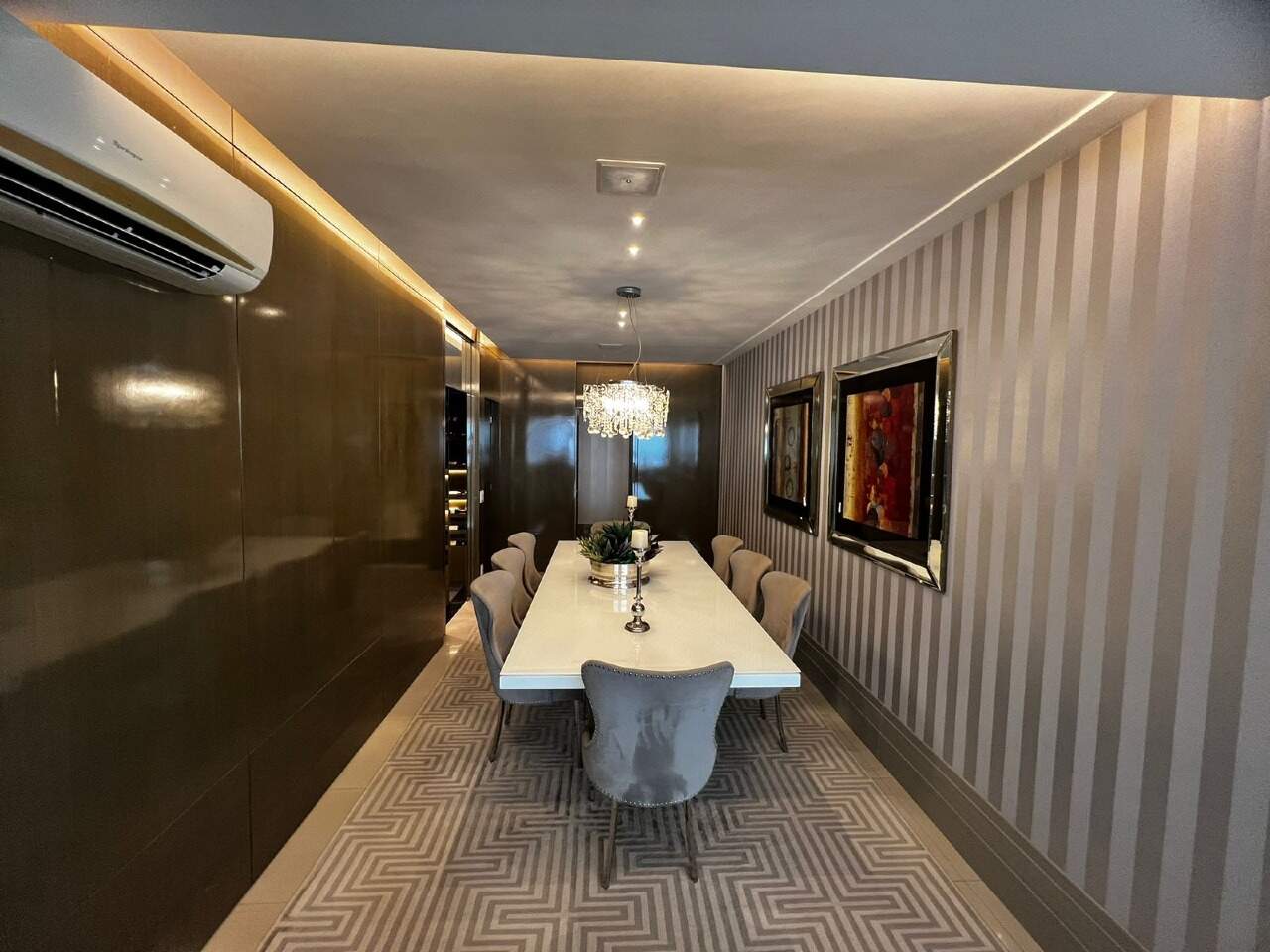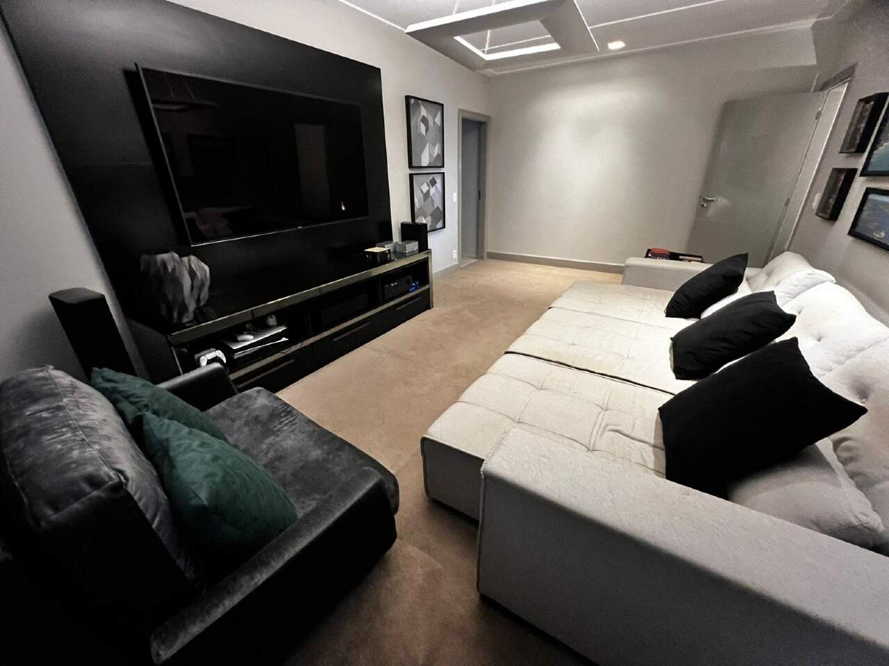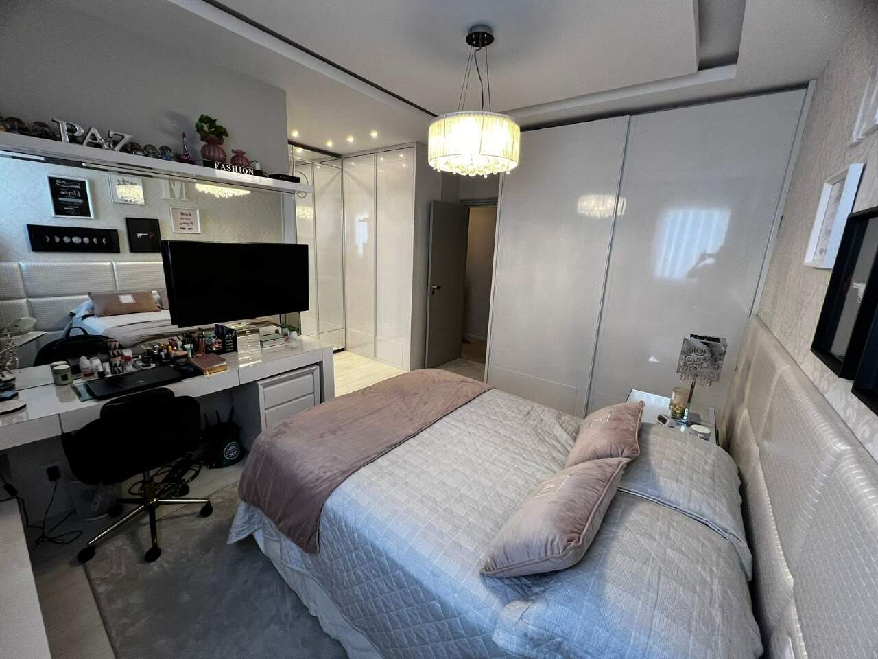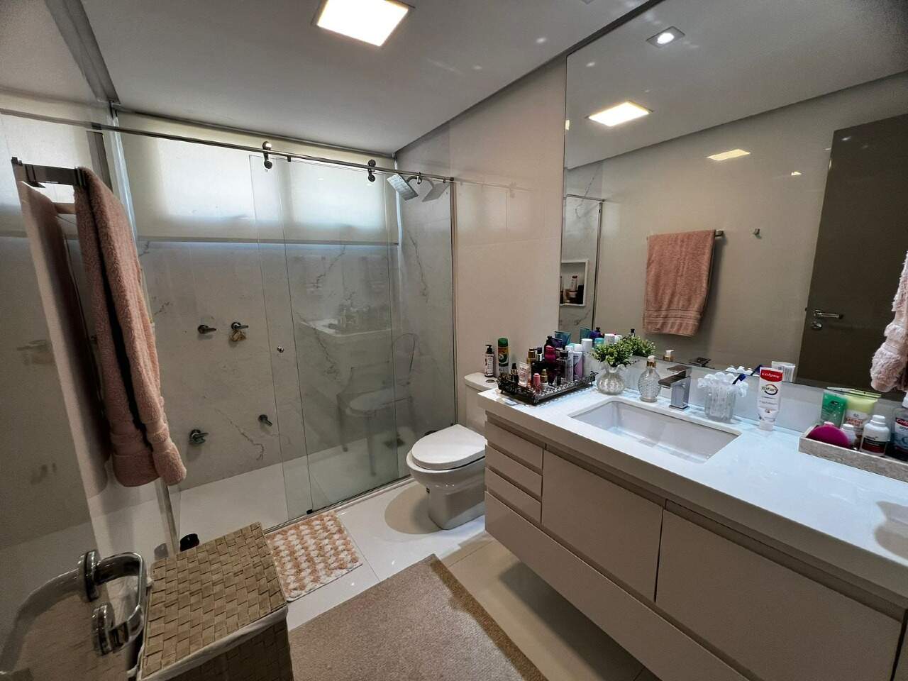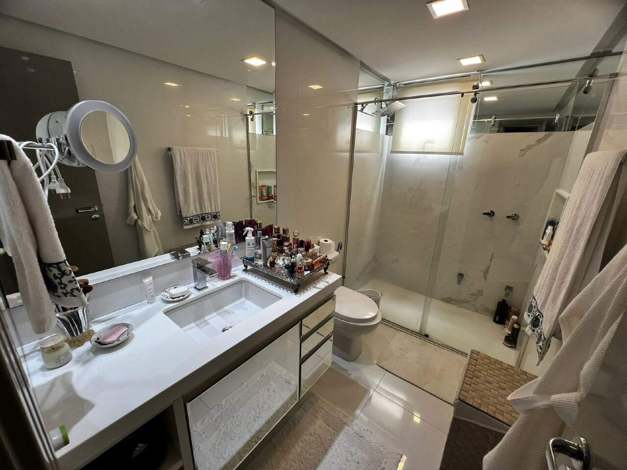 Apartamento com 1 sala de estar, 2 salas de TV, 1 sala de jantar, Home theater, 4 suíte com closet, cozinha planejada, adega climatizada, 1 wc social, área de serviço, interfone, lavabo, 4 vagas de garagem. Condomínio com academia, área de lazer, churrasqueira, hall de entrada, piscina, porteiro eletrônico, salão de festas, sauna. Apartamento incrível, com acabamento de ótima qualidade e muito bom gosto. O edifício dispõe de um apartamento por andar, com ar condicionado em todos os cômodos, churrasqueira integrada. Possui persianas automatizadas, sistema de som distribuído em todo apartamento.