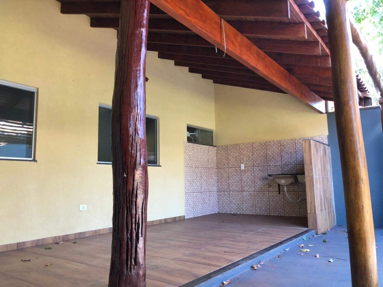 2 suítes, 1 quarto, 1 cozinha conjugada, 1 área gourmet, 1 banheiro externo, área externa ampla.