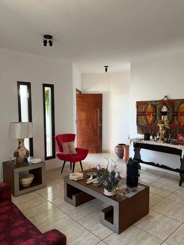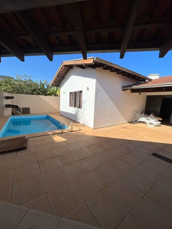 Contendo quatro quartos, sendo uma suíte, 2 banheiros, lavabo, sala com dois ambientes, cozinha e lavanderia coberta. Possui área de lazer com piscina e churrasqueira, garagem ampla para 4 carros.