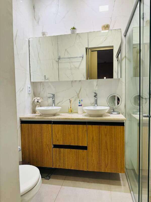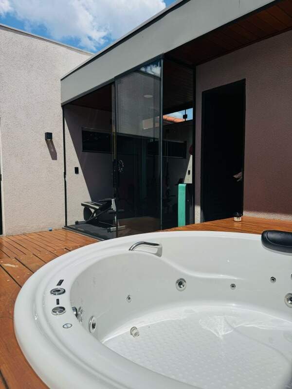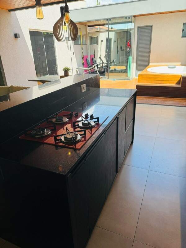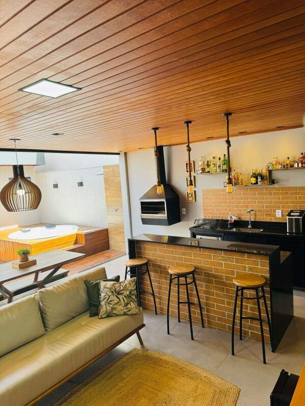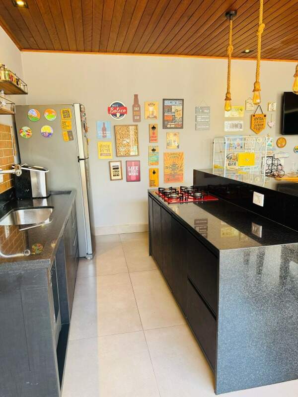 Localizada em condomínio fechado, esta elegante residência oferece conforto, segurança e um projeto de interiores diferenciado. São três dormitórios, sendo duas suítes, ambas equipadas com armários planejados. Uma das suítes conta com closet e a outra foi adaptada para brinquedoteca, com possibilidade de reversão. A casa dispõe de duas salas amplas, cozinha principal com móveis planejados e uma completa área gourmet nos fundos, totalmente integrada aos ambientes internos. Na área externa, além da cozinha gourmet, há hidromassagem, academia, lavanderia e banheiro de apoio. O imóvel foi recentemente reformado, com telhado revestido por placas de alumínio que evitam infiltrações.