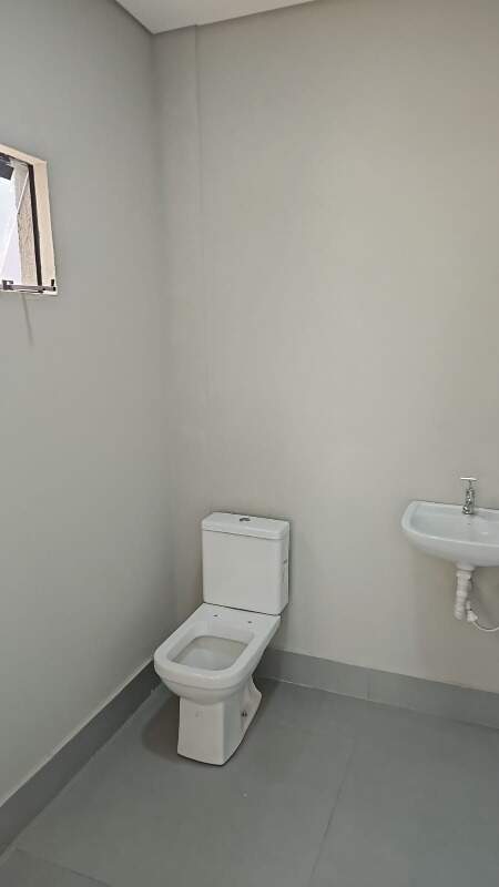 Sala comercial com banheiro PNE e área de serviço, além da área grande nos fundos.