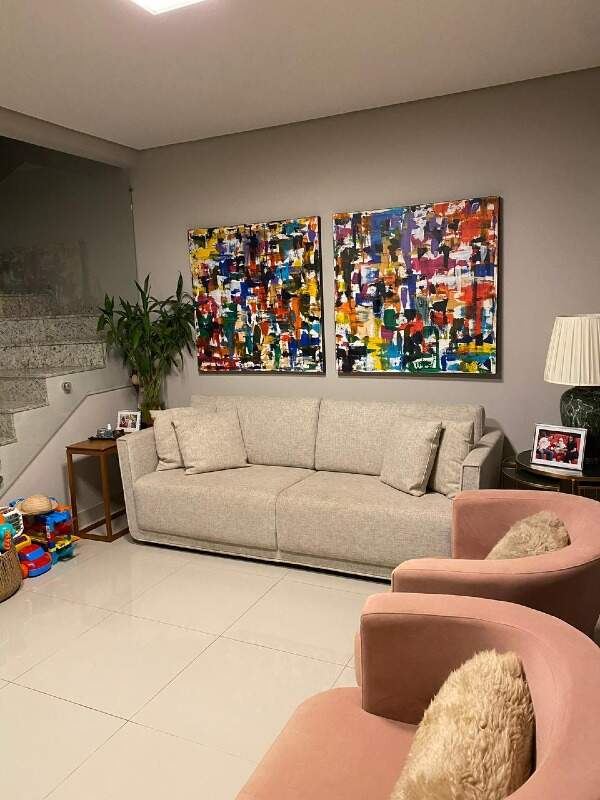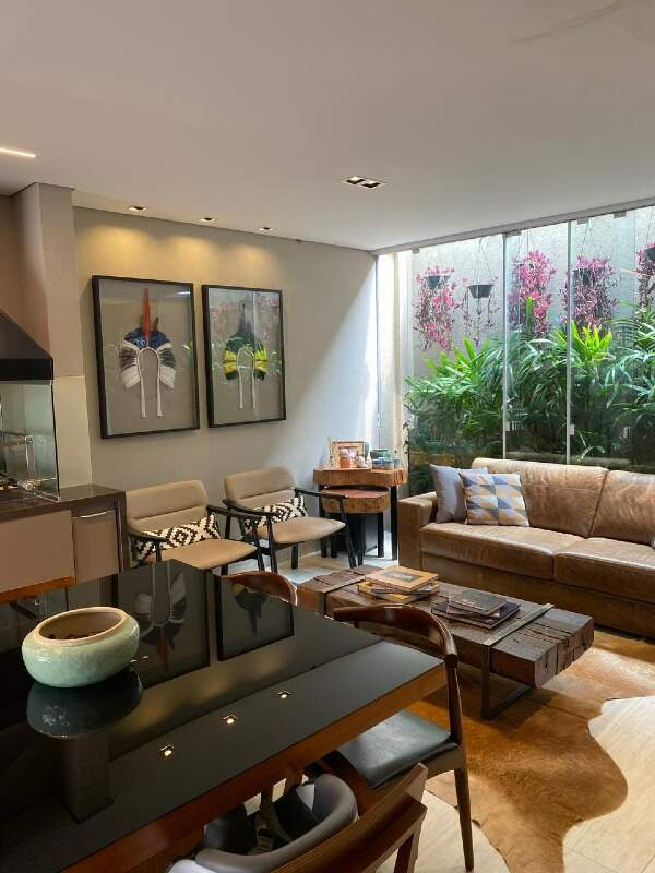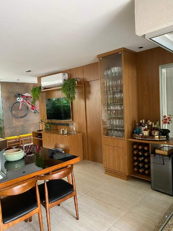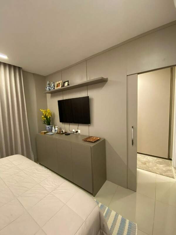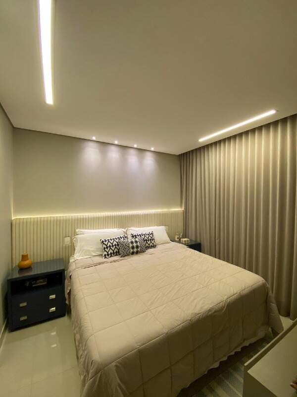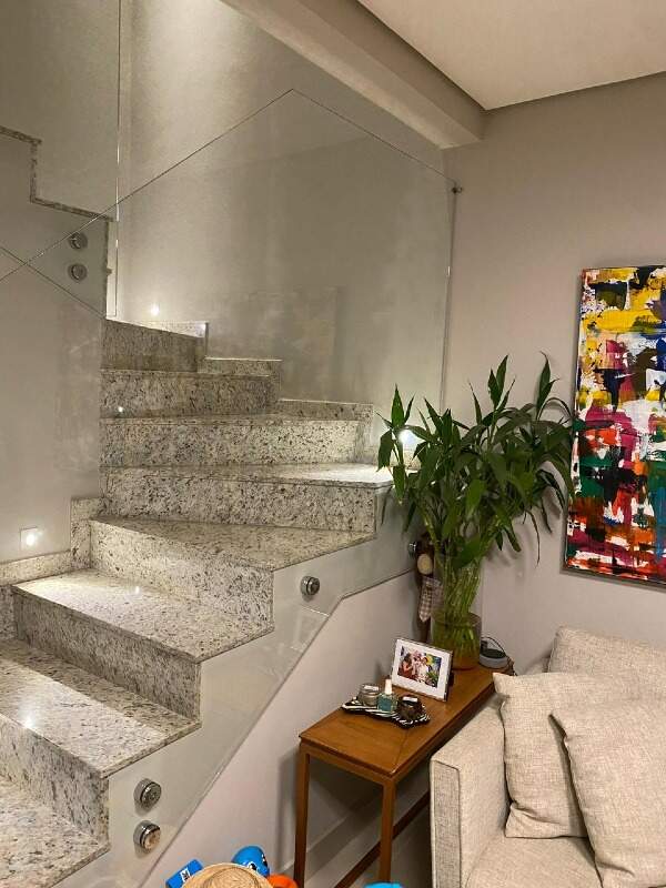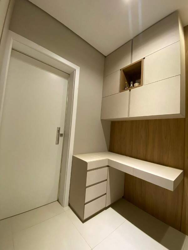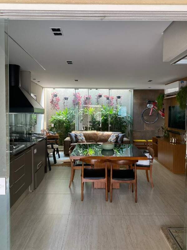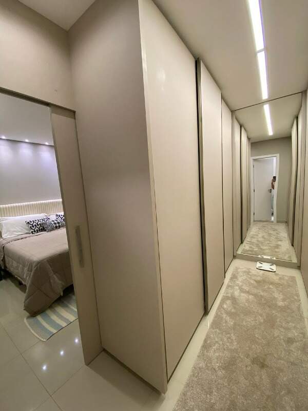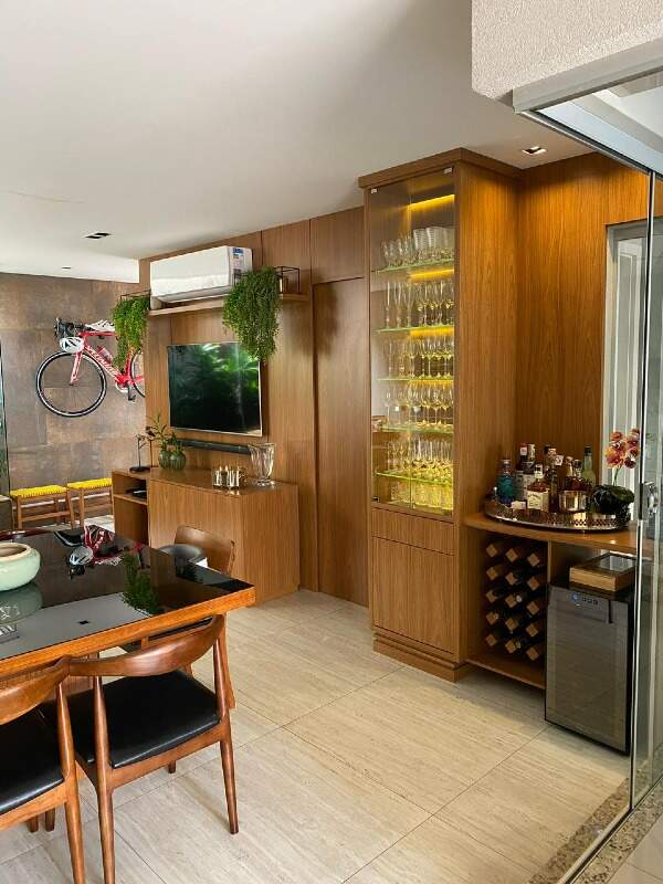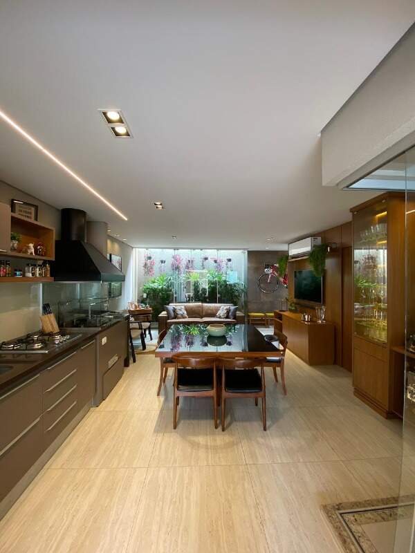 01 apartamento, home office, 01 suíte master com closet, 01 sala de estar/Tv, lavabo com depósito, cozinha com planejados, cooktop e coifa, área de serviço coberta com planejados, área gourmet com planejados, churrasqueira com giragril, jardim e garagem para 02 carros, fino acabamento, com planejados em todos os ambientes, gás tubulado para cozinha e área gourmet, projeto de iluminação.