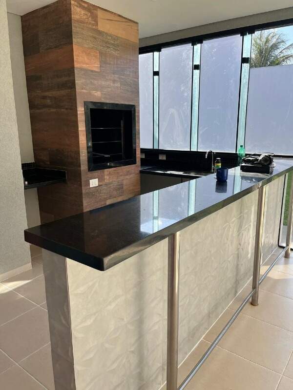 O imóvel contém 1 suíte com closet, sacada e ar condicionado, 1 quarto com armários e ar condicionado e mais 1 quarto. Sala 2 ambientes com pé direito duplo, sala de TV, cozinha planejada, área gourmet, área externa, área de serviço com despensa, 1 lavabo no piso inferior e 1 banheiro no piso superior, garagem para 2 carros coberta e 2 carros descoberta. Projeto luminotécnico